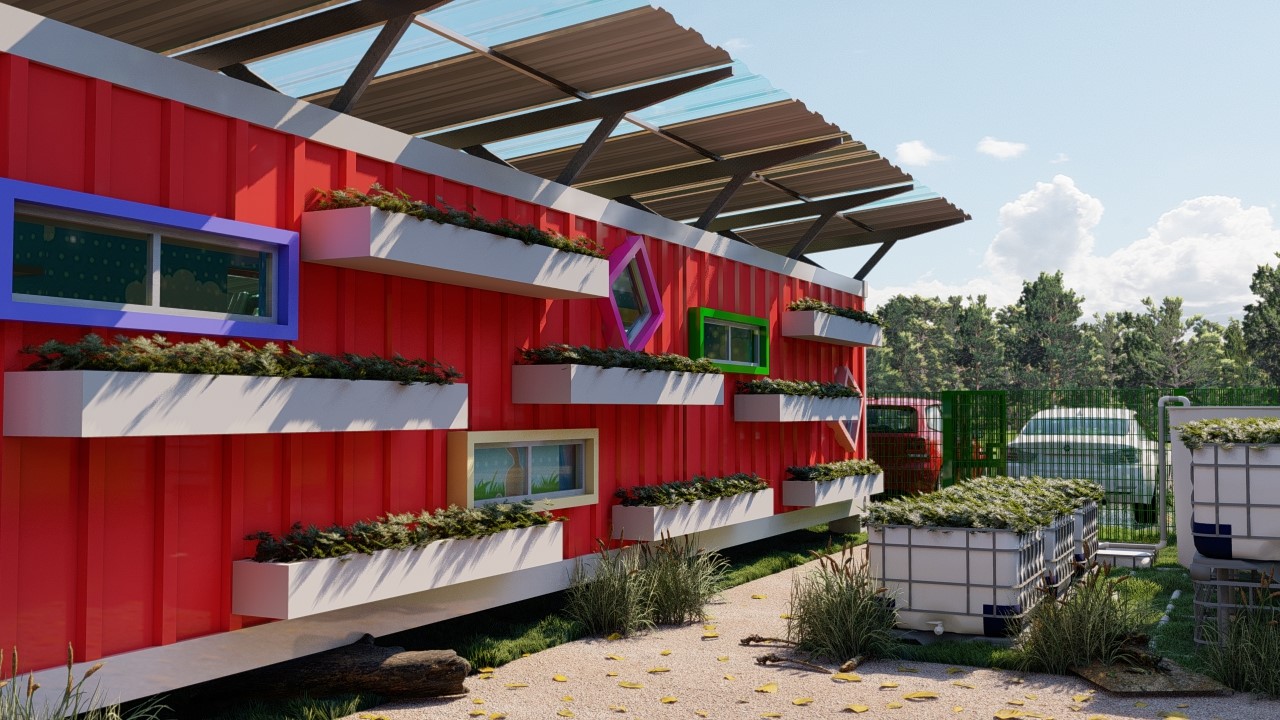 Built with a limited budget and access to resources. The prototype transformed a 12m long recycled shipping container into an independent classroom. The structure consists of a sheltering roof top, outdoor play area, garden.